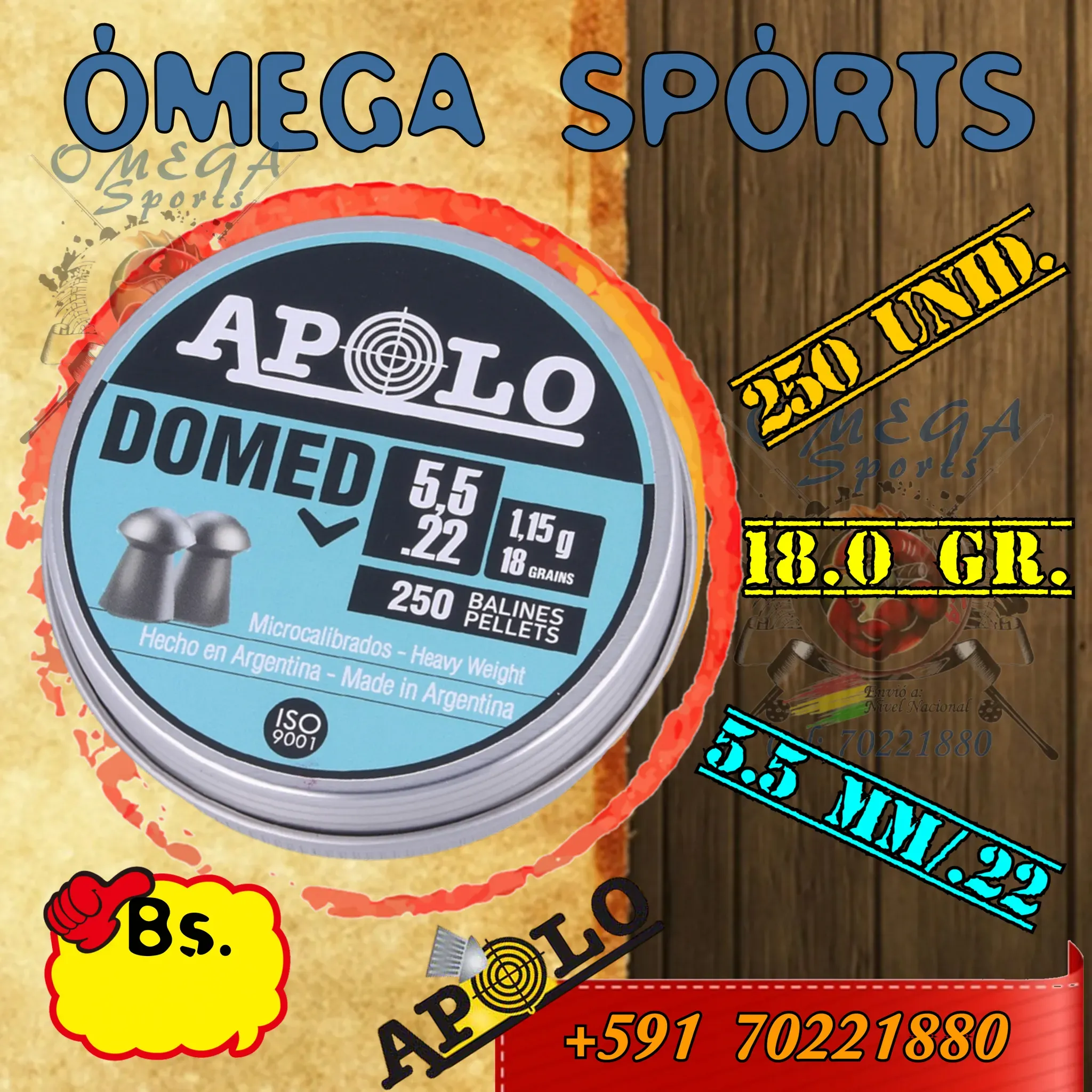 Los Balines APOLO son unos balines de Plomo de Alta Calidad en calibre 5.5mm (.22). En este caso se presentan en una lata de 250 unidades.