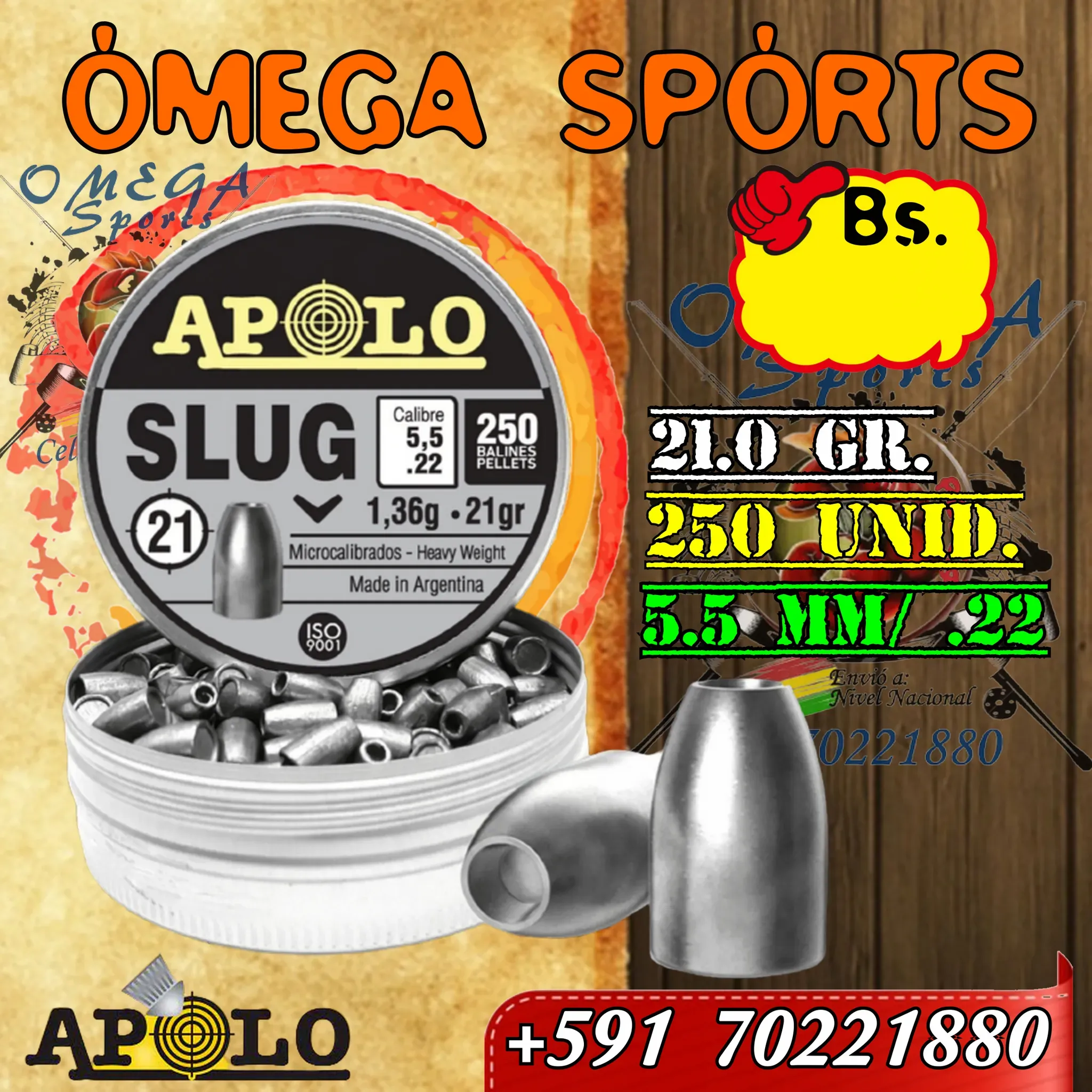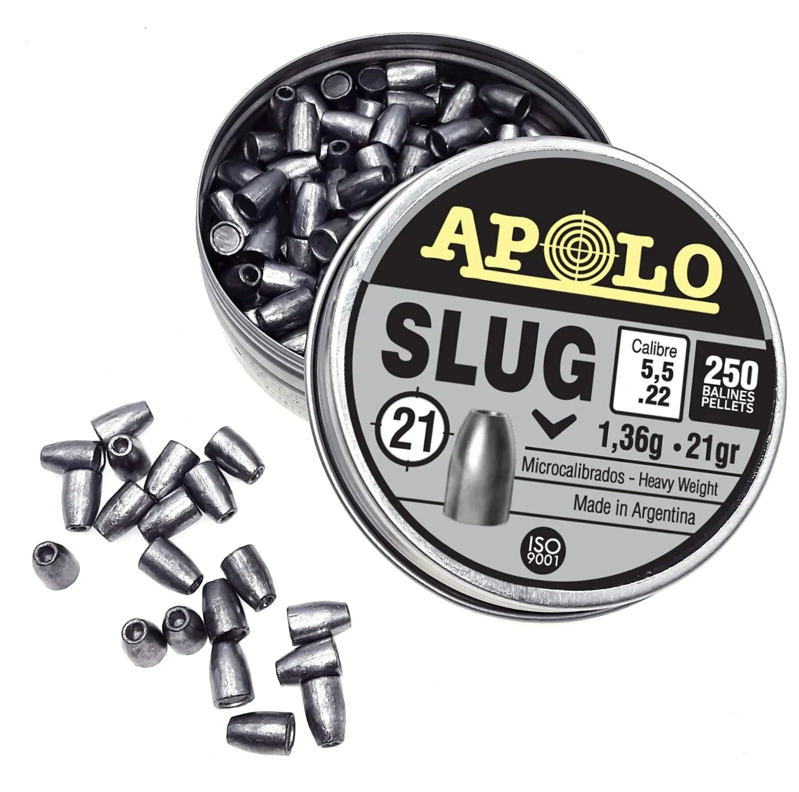 Los Balines APOLO son unos balines de Plomo de Alta Calidad en calibre 5.5mm (.22). En este caso se presentan en una lata de 250 unidades.