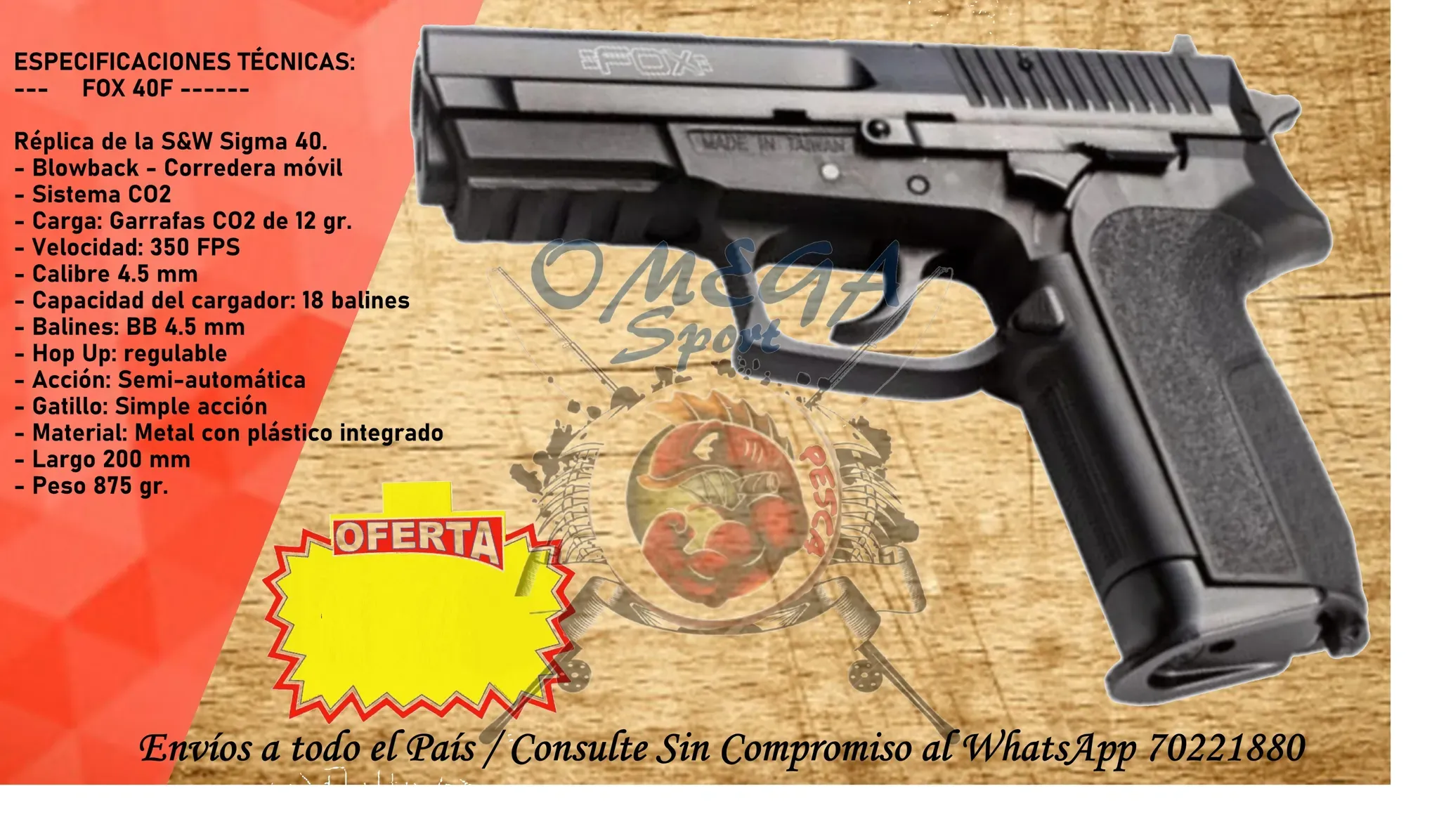 - Carga: Garrafas CO2 de 12 gr.