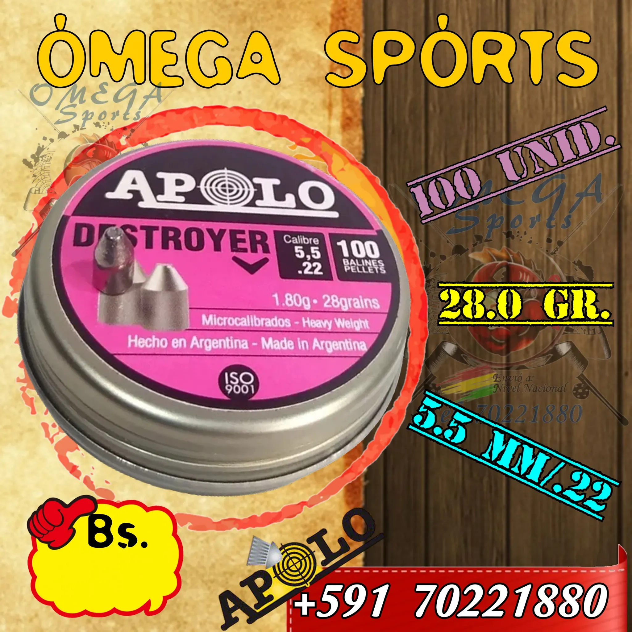 Los Balines APOLO son unos balines de Plomo de Alta Calidad en calibre 5.5mm (.22). En este caso se presentan en una lata de 100 unidades.