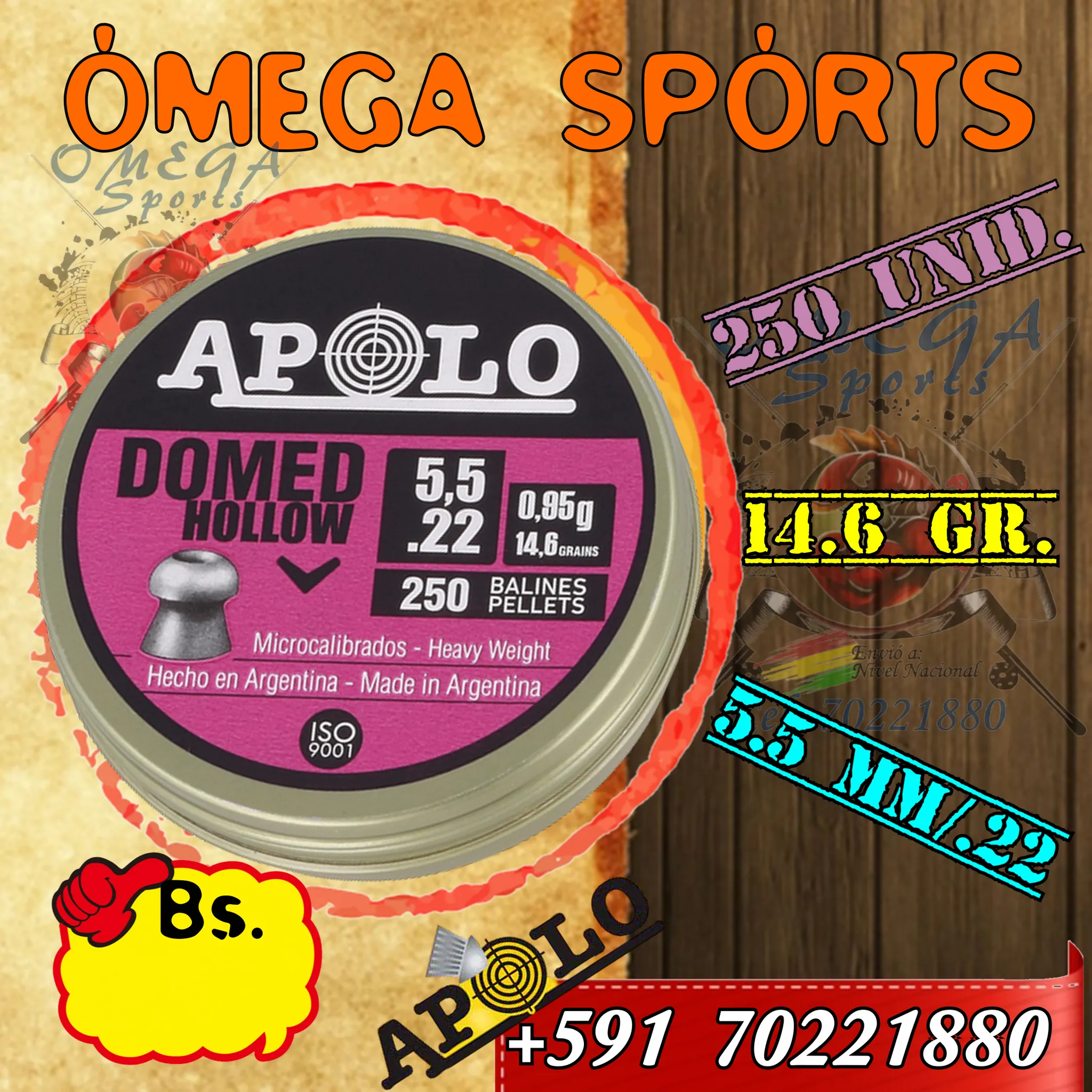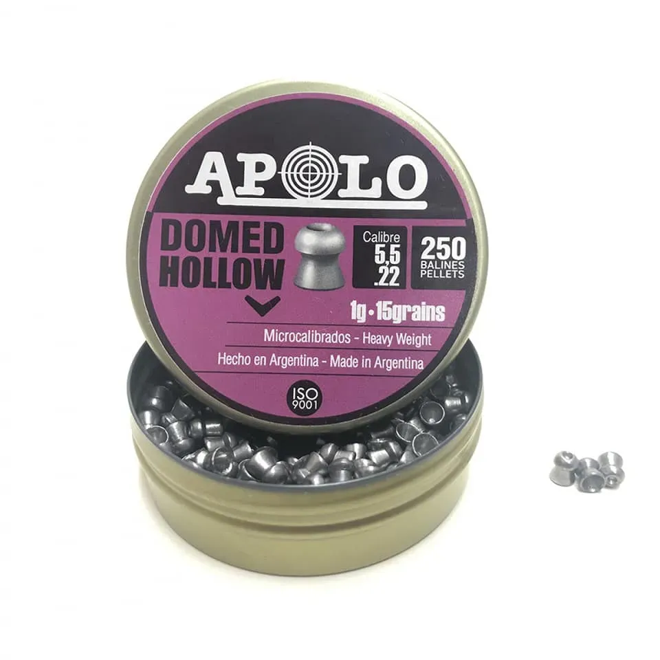 Los Balines APOLO son unos balines de Plomo de Alta Calidad en calibre 5.5mm (.22). En este caso se presentan en una lata de 250 unidades.