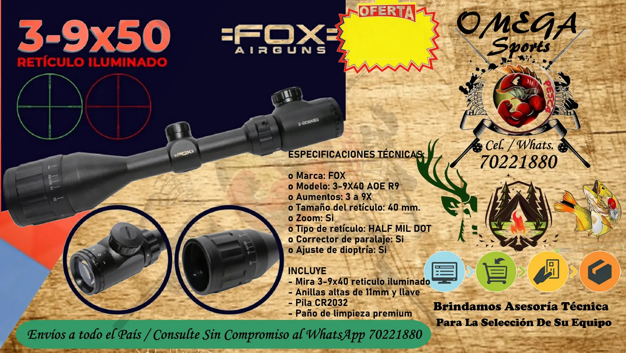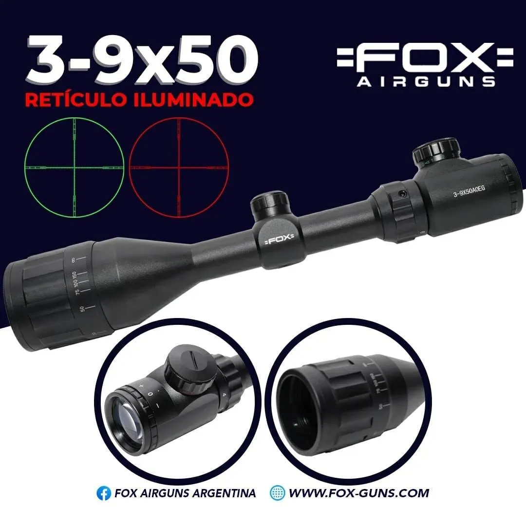 • Mira Telescopica Fox 3-9x50 Reticulo Iluminado.