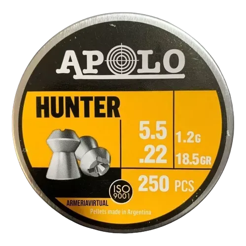 Los Balines APOLO son unos balines de Plomo de Alta Calidad en calibre 5.5mm (.22). En este caso se presentan en una lata de 250 unidades.