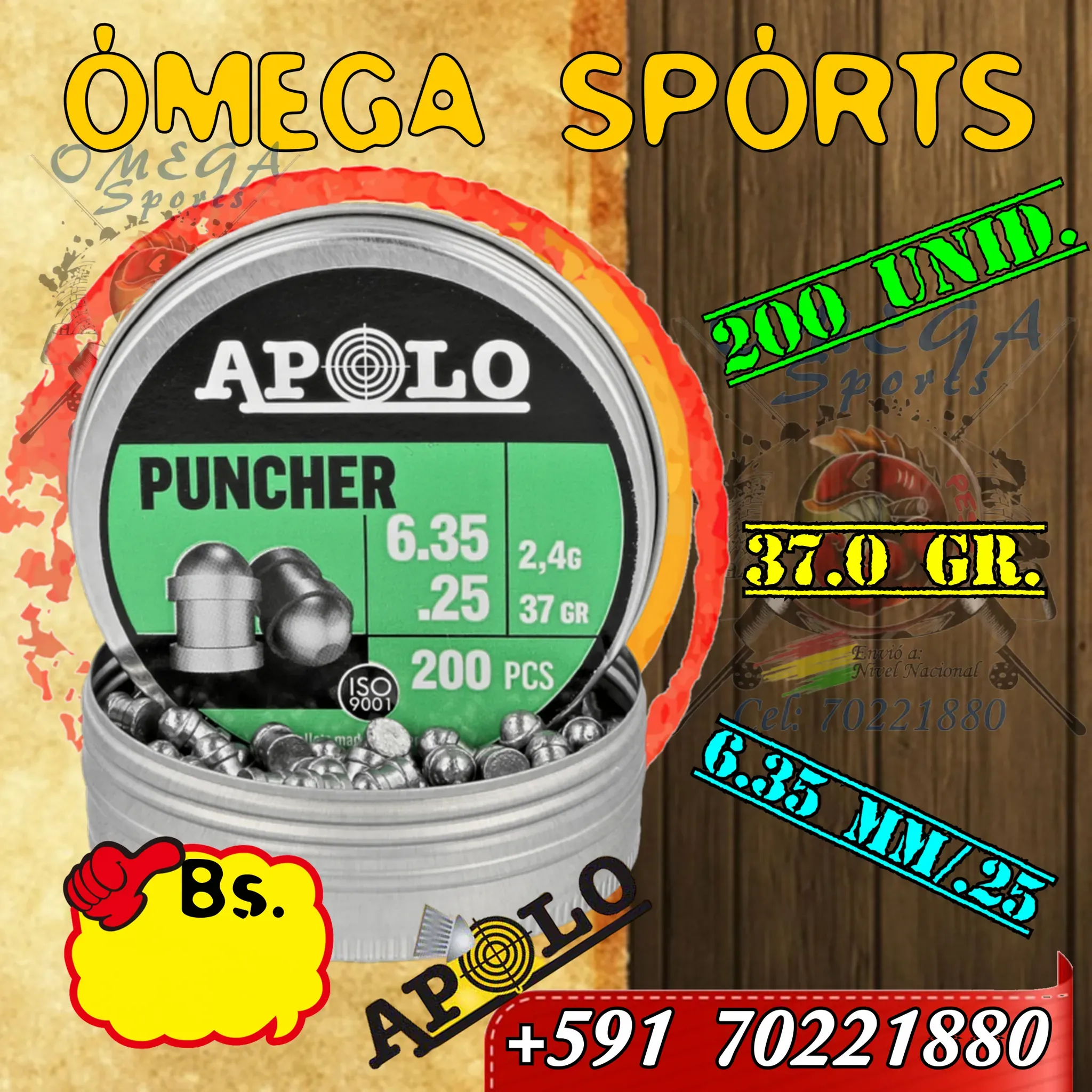 Los Balines APOLO son unos balines de Plomo de Alta Calidad en calibre 6.35mm. (25) . En este caso se presentan en una lata de 200 unidades.